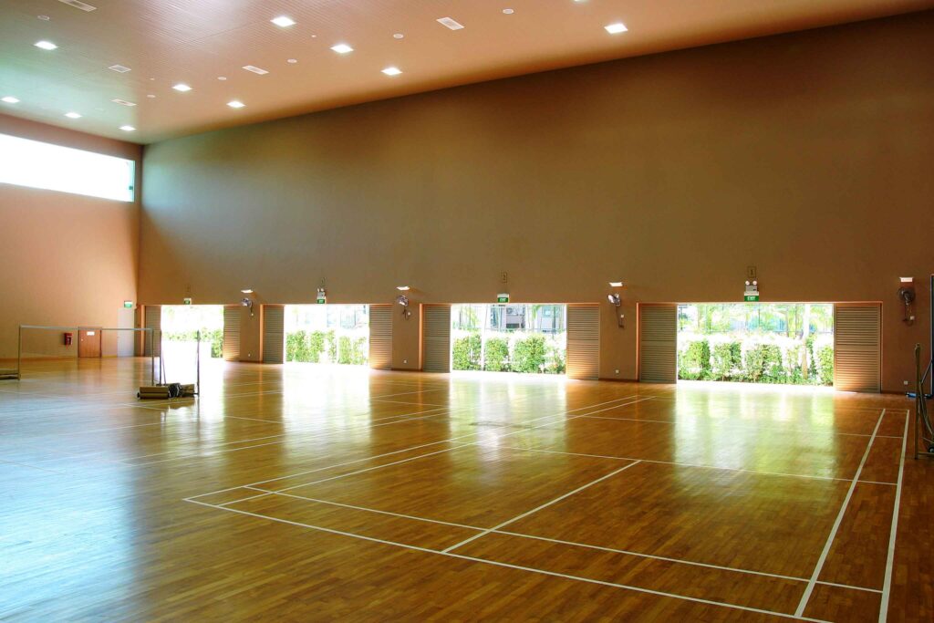 • Our Wooden flooring systems are made up of kiln seasoned, treated and precisely cut hard Maple or Teak woods which is certified for sports uses.